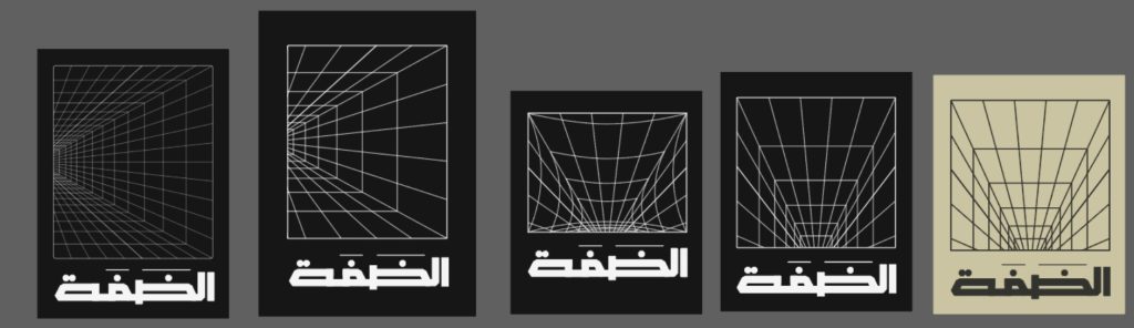 تعكس الهوية الجديدة روح الجماعة والعبور والتخيّل. تُعتبَر السينما هنا رحلة نحو عوالم جديدة، حيث يلتقي الناس على حافة الواقع والخيال لاستكشاف المكان وفضاء العرض معاً. يحمل الخطّ المستخدم لكتابة كلمة “الضفّة” بعدها الثقافي واللغوي، ويظهر بخط هندسي عريض يمنحه قوة ووضوحاً. أما الشعار البصري، فبدأ العمل عليه من خلال عملية تصميم شبكة من الخطوط ونقاط التلاشي التي تعبّر عن شاشة السينما كمساحة مفتوحة للغوص، وعن السفر كحركة في اتجاه مقصد ما. جاءت الأشكال الأولى صارمة ومربعة، مستوحاة من شكل تذكرة السينما. ومع ثني الشبكة وفتحها، ظهرت انسيابية تتيح العبور وتعبّر عن ازدواجية “الضفّة” كمساحة محددة للقاء وأفق مفتوح للأفكار والتخيّل. أما وضع كلمة “الضفّة” تحت الشعار البصري فيشير إلى الجماعة (“ضَفّة من الناس”) التي تلتقي تحت شاشة واحدة – والضفّة كمساحة لقاء وتحوّل.